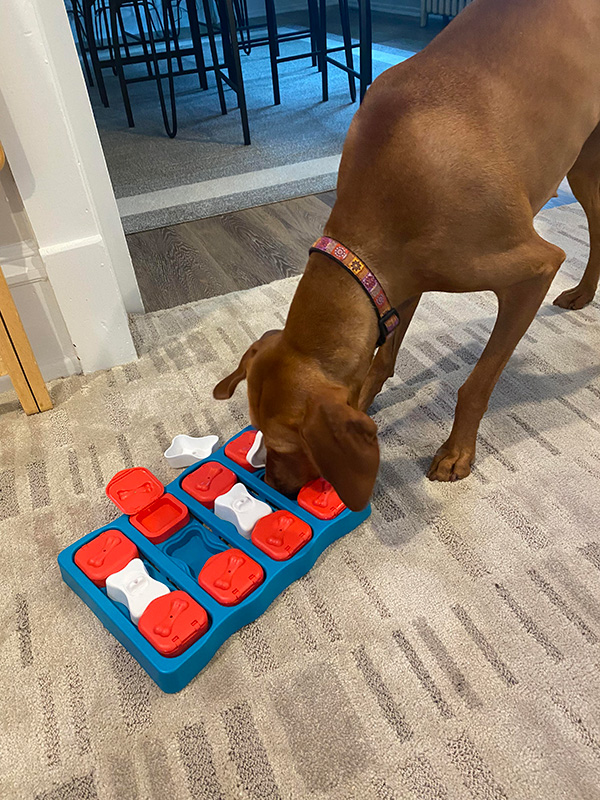 When my sweet girl Pinot is acting like she does not know any behaviors at all and wants to make her own decisions, I revert to where our relationship started and the basic commands of behavioral foundation. Something as simple as “sit” or “look” is enough to get her to refocus on me and understand I need her attention. Pinot loves to train, and I have worked hard to make her a well-balanced, confident, and social dog. She helps in my classes with puppies, is a mentor dog at Playful Pups Retreat and works with reactive dogs in my private training business. Consistency and trust are the two components that enable her to be the amazing dog she is today. We practice consistent rules and commands, and she continues to learn and thrive. Pinot has shown me that dogs want to please their owner more than anything else.